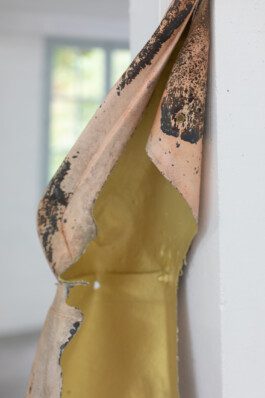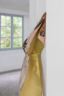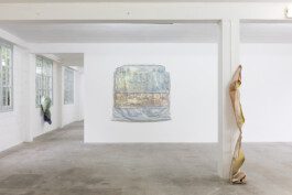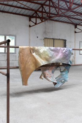 Temporal, geographical, political, and aesthetic considerations play a pivotal role in Rao's work, embracing change, mistakes, new information, and desires. Rao draws inspiration from both materials and surroundings, allowing for a dynamic and evolving creative process. Much like the jellyfish adapting to its marine and human-made environment, Rao's artworks embody a certain freedom from categorization, their forms changing based on display conditions, weather, and audience interaction. In This Many-Coloured Sheen, Rao engages with found materials and references from the Treignac project, improvising and collaborating with the exhibition space—a former yarn factory. The reversible works, rich in color, invite viewers on an enjoyable journey, their dynamic nature requiring careful attention and offering ever-changing perspectives. The experience becomes an in-between moment of time, movements, and connections, echoing the transformative nature of Rao's sculptural paintings on the top floor of the old yarn factory.